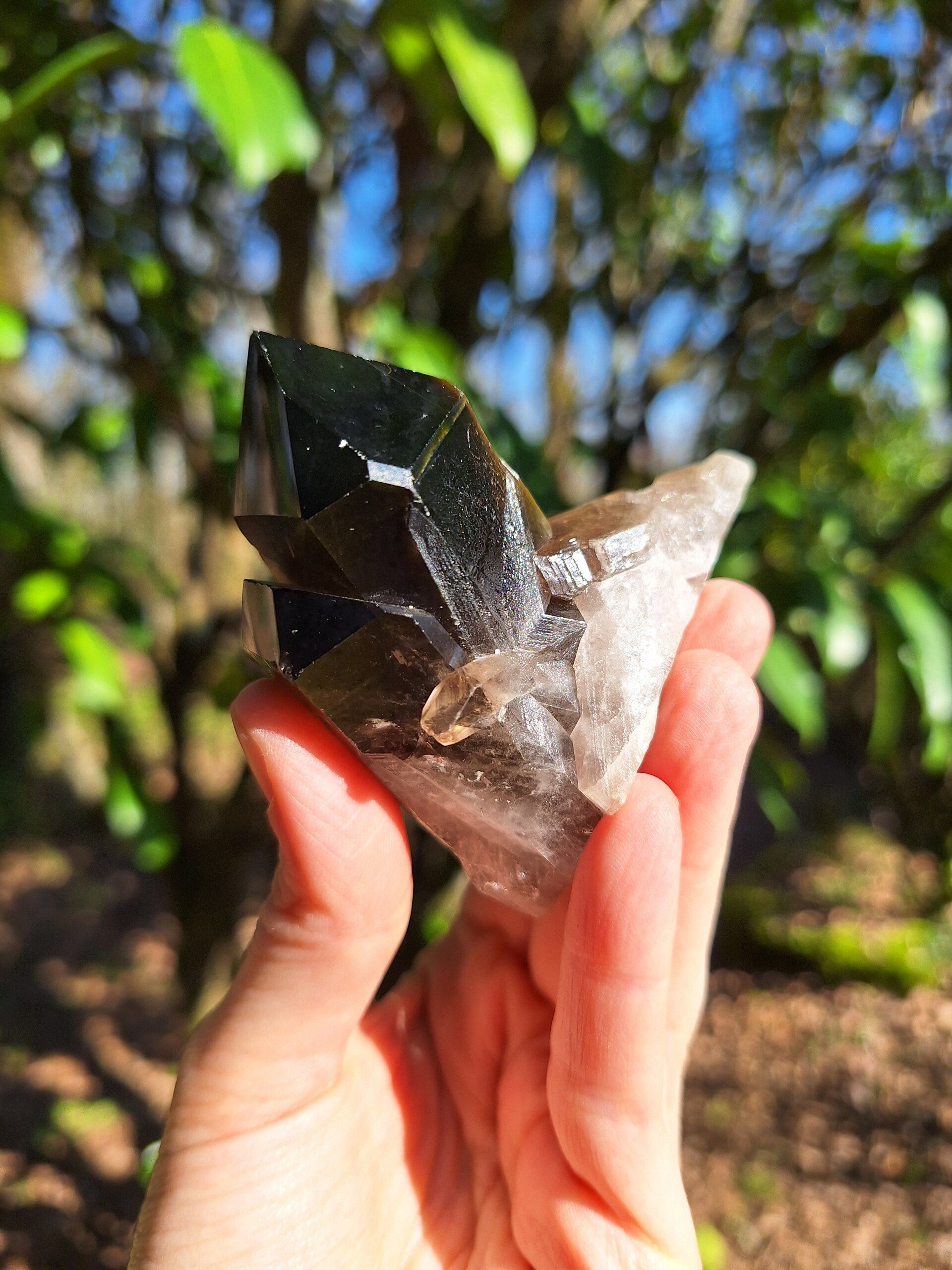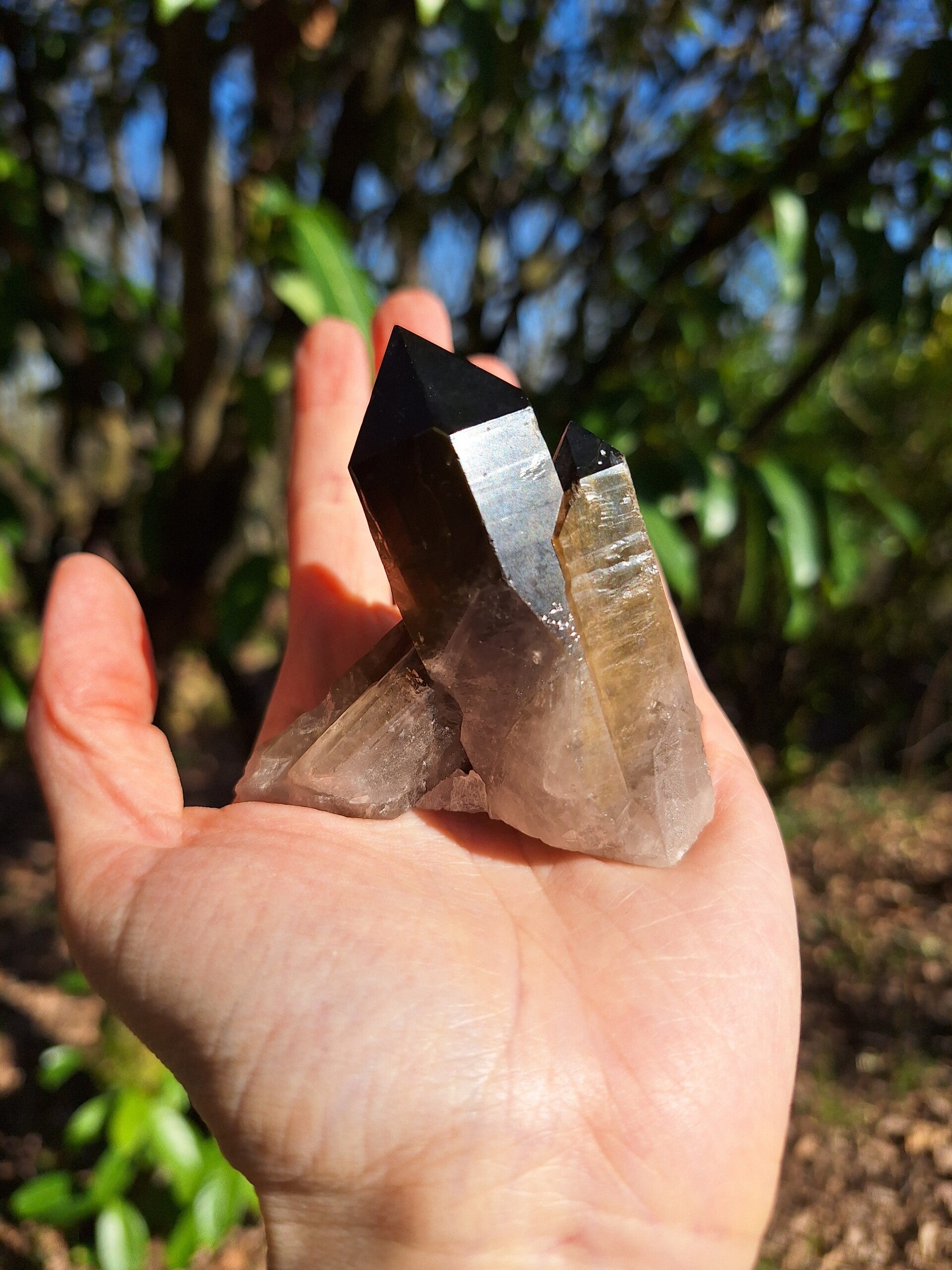 Faisant partie de la grande famille des Quartz (Cristaux de Roche), bien connues pour leurs transparences, leurs inclusions et leurs arcs-en-ciels, qui sont de vraies cadeaux de la nature. La teinte fumée (brune transparente) est due à des traces d'aluminum dans sa composition minéralogique. Comme le cristal de roche, il serait à la fois récepteur, émetteur et amplificateur. Il serait aussi efficace pour ôter les blocages énergétiques, remonter le taux vibratoire, réaligner les corps énergétiques et travailler sur son alignement. Particulièrement utiles pour toutes formes de dépendances (tabac, alcool, drogue...), car il raffermirait la volonté.