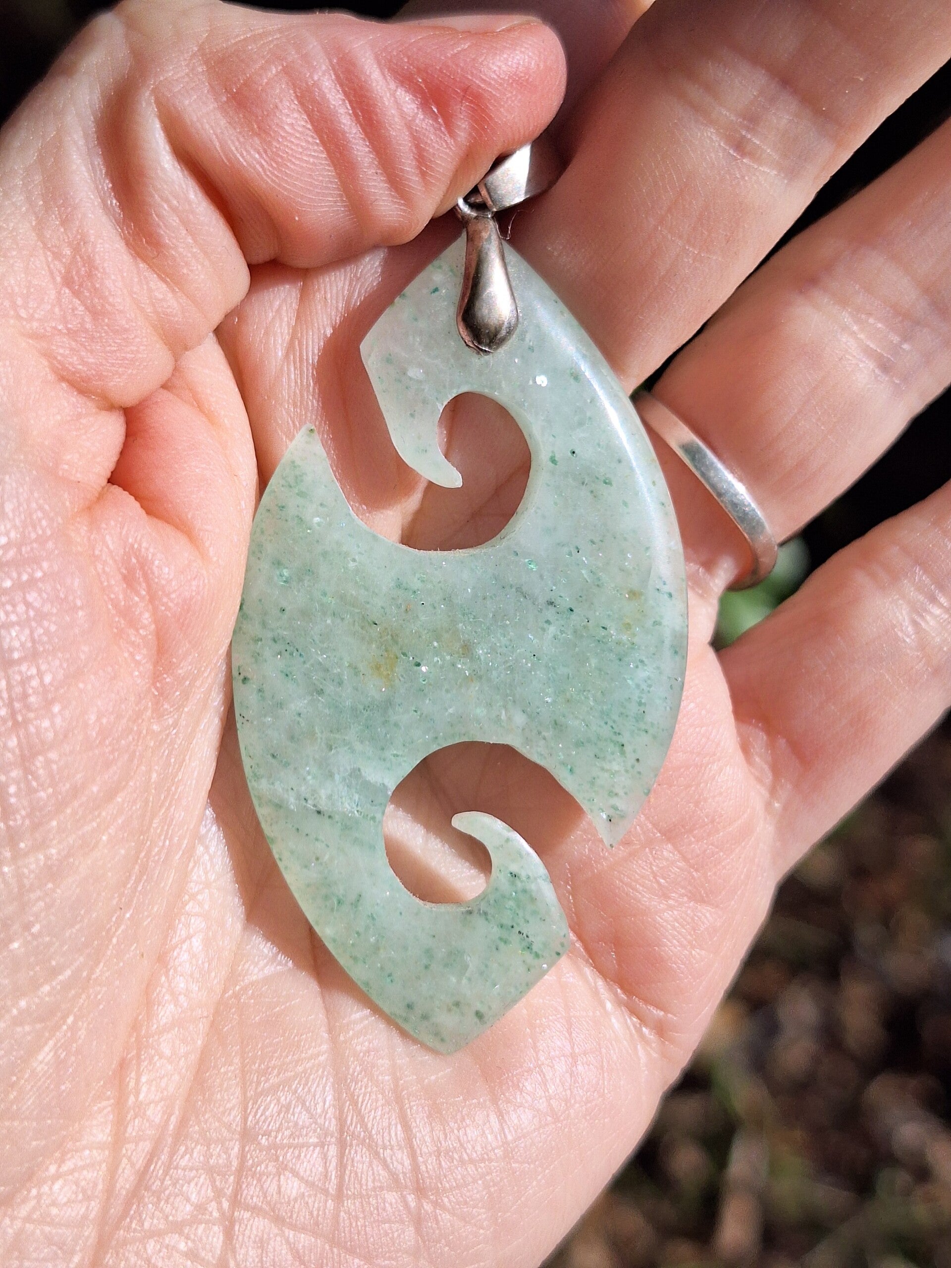 L'Aventurine Verte, de la grande famille des Quartz et devant sa couleur au chrome de la fuschite inclus sous forme de paillettes, est une pierre à la vibration très douce, reliée au chakra du coeur, qui conviendrait particulièrement pour apaiser le mental. Elle serait une pierre porte-bonheur, apportant chance, renaissance et reconnaissance. Elle donnerait joie, humour et confiance en soi, évitant ainsi d'attirer ou de s'enliser dans des relations toxiques. Sur le plan physique, son action apaisante serait bénéfiques pour tout type de tension, rééquilibrerait le foie et la vésicule biliaire, ainsi que les problèmes de peau.