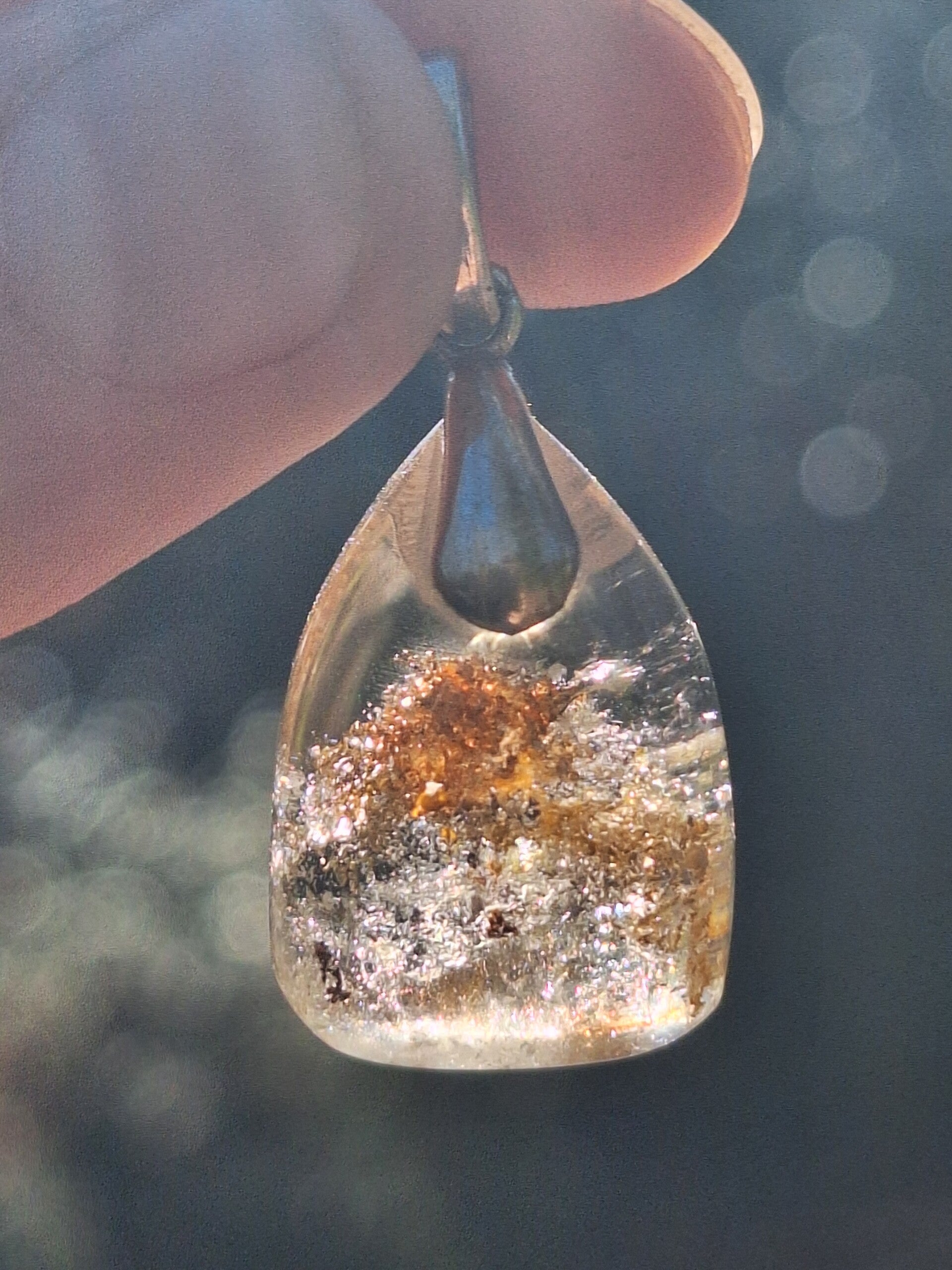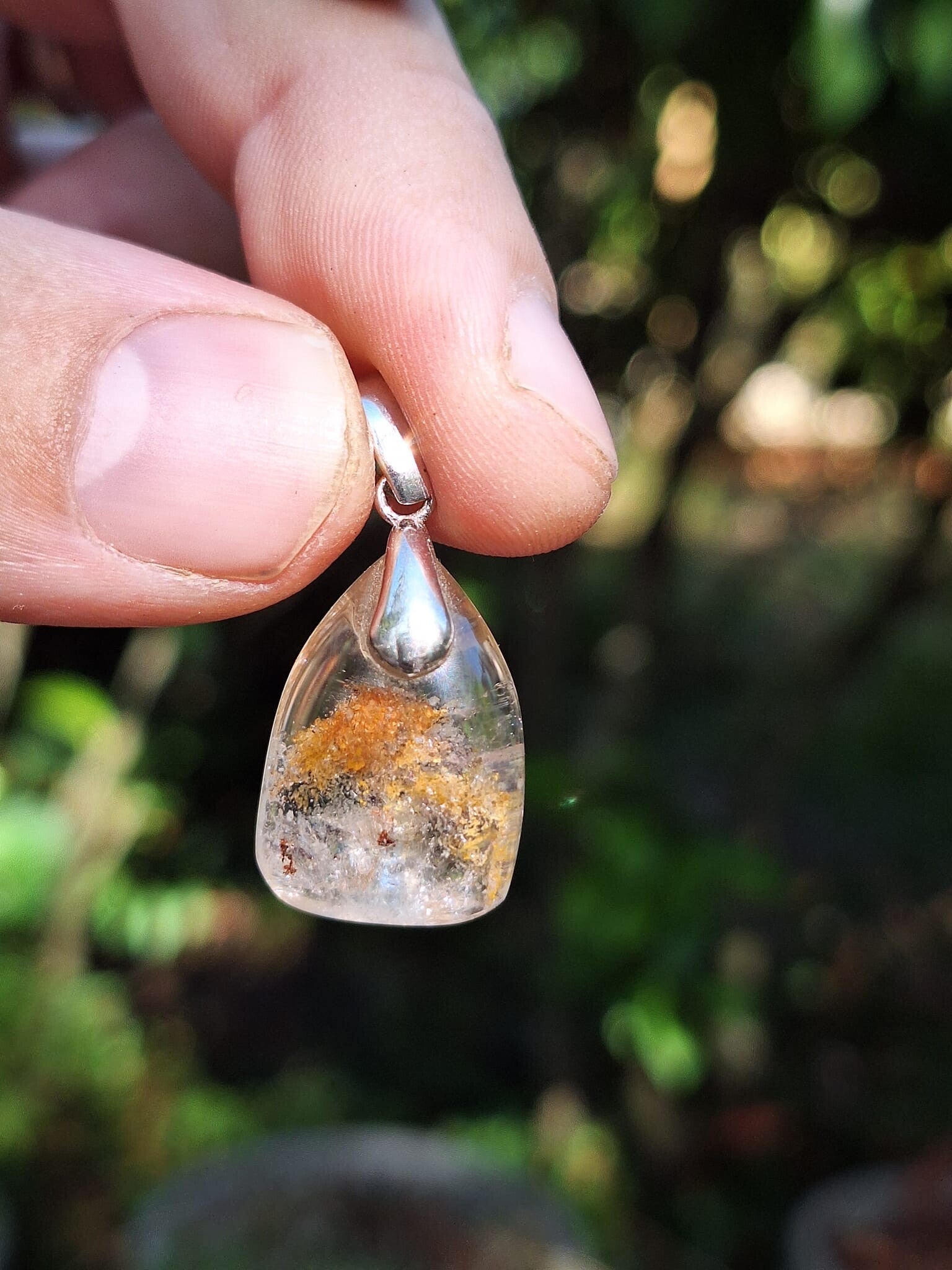 Pendentif taillé à l'atelier en Quartz Fantôme avec inclusions de Cuivre