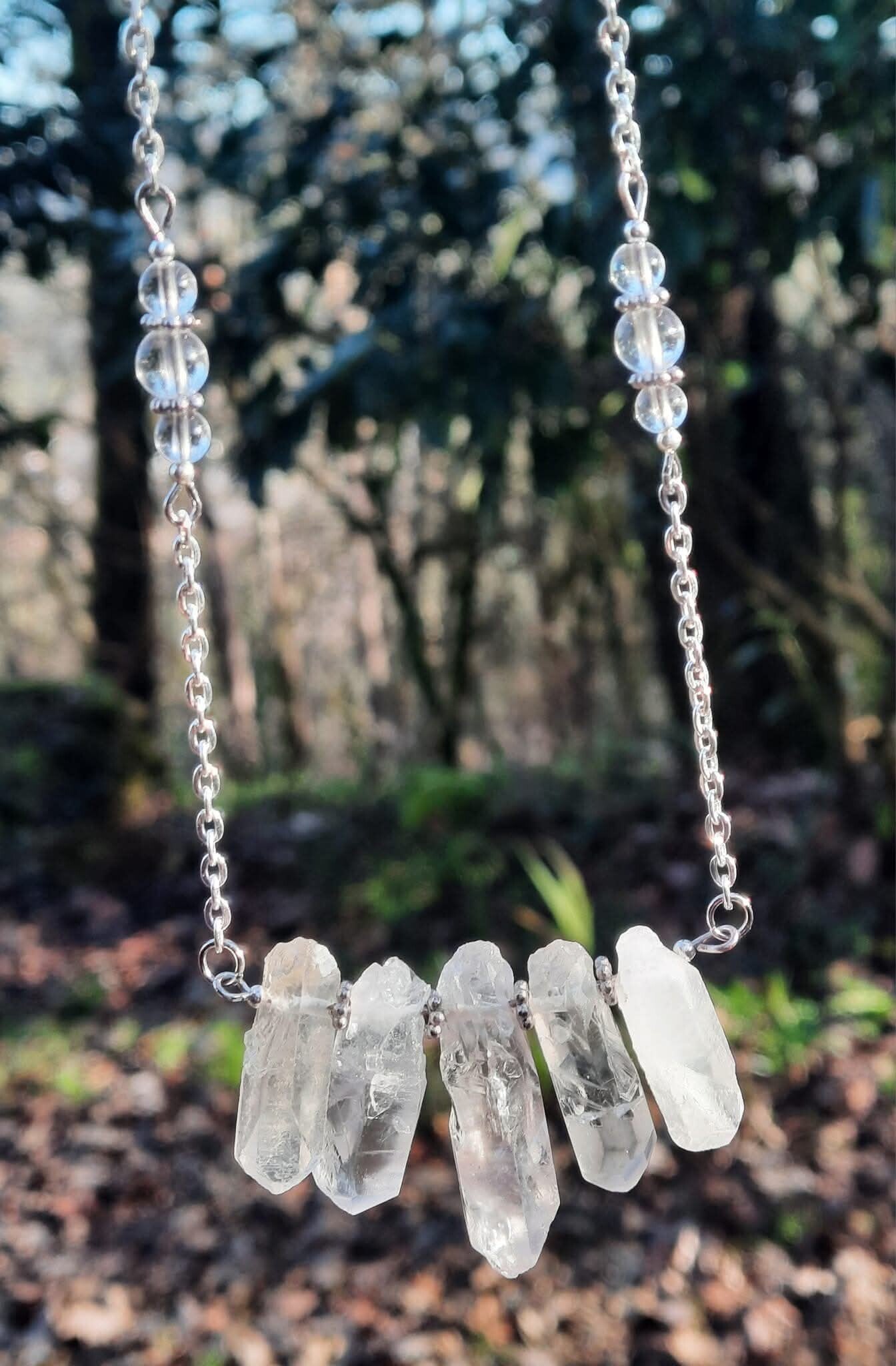 Collier Cristaux de Roche Bruts & Perles crée à l'atelier.